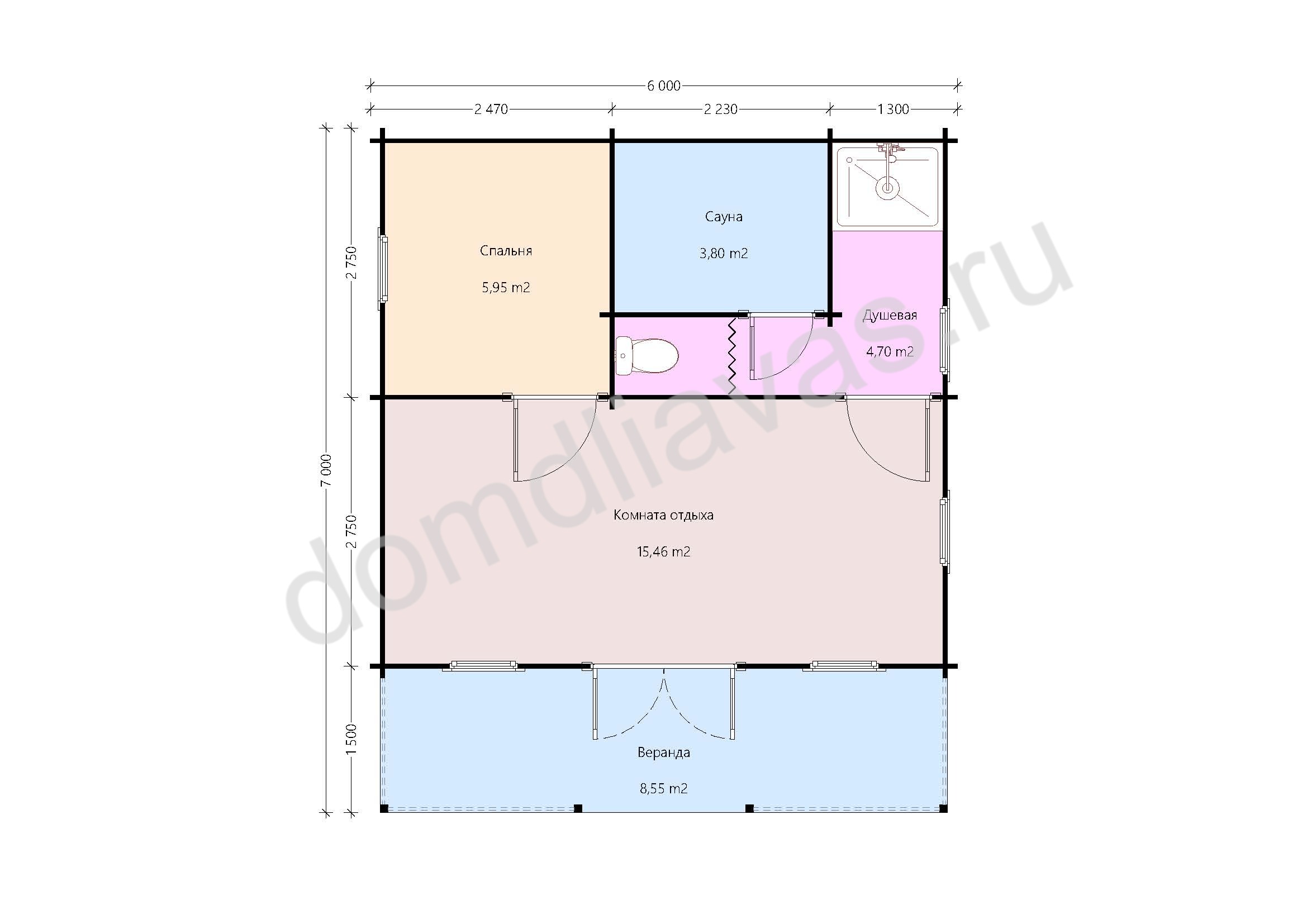 - Внешние размеры 6,0х7,0 м